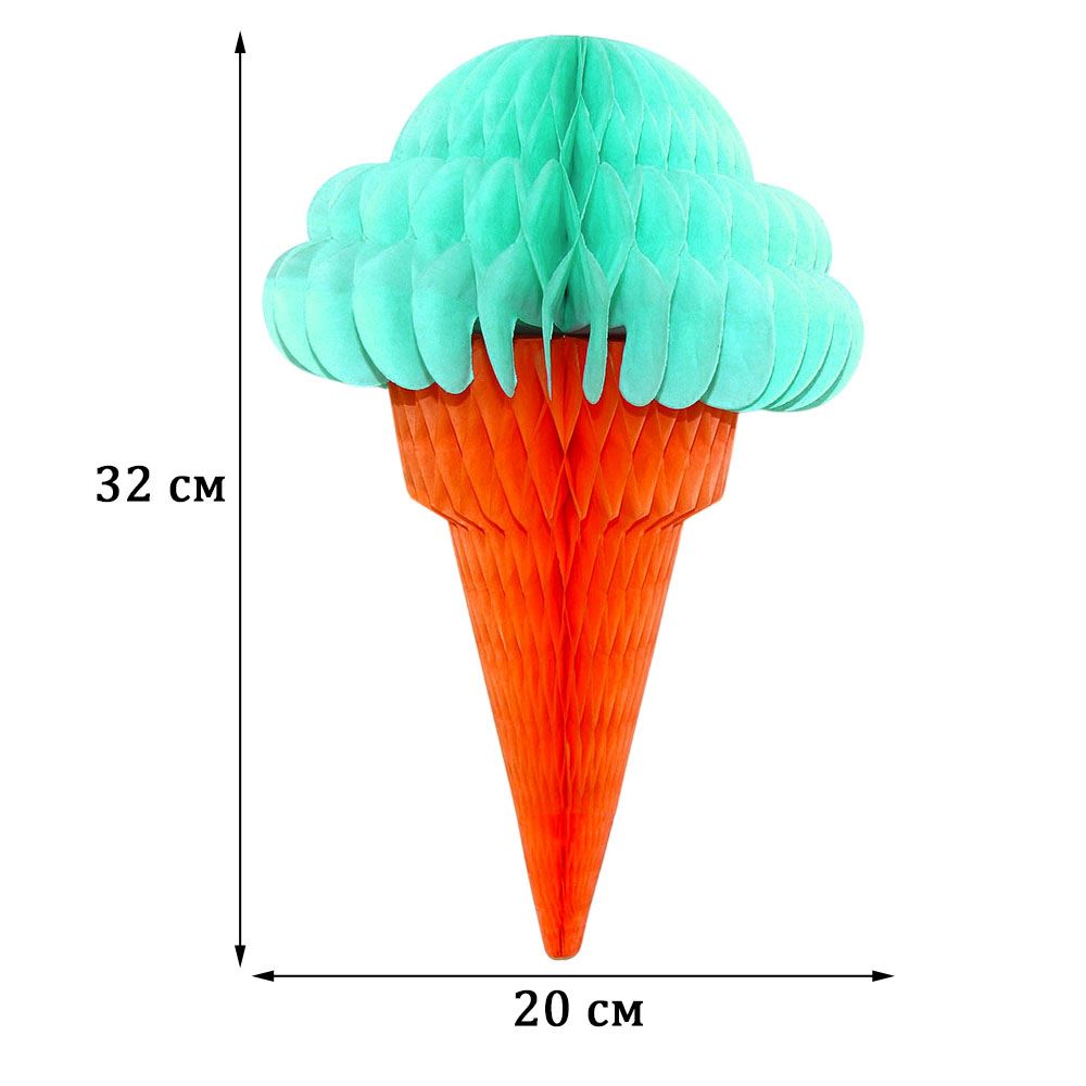 Бумажное украшение «Мороженое» 32х20 см — стильное решение для праздничного декора, оформления фотозоны, витрины магазина и тематических мероприятий.