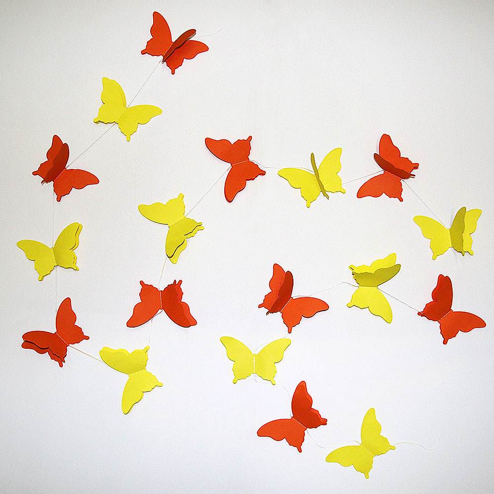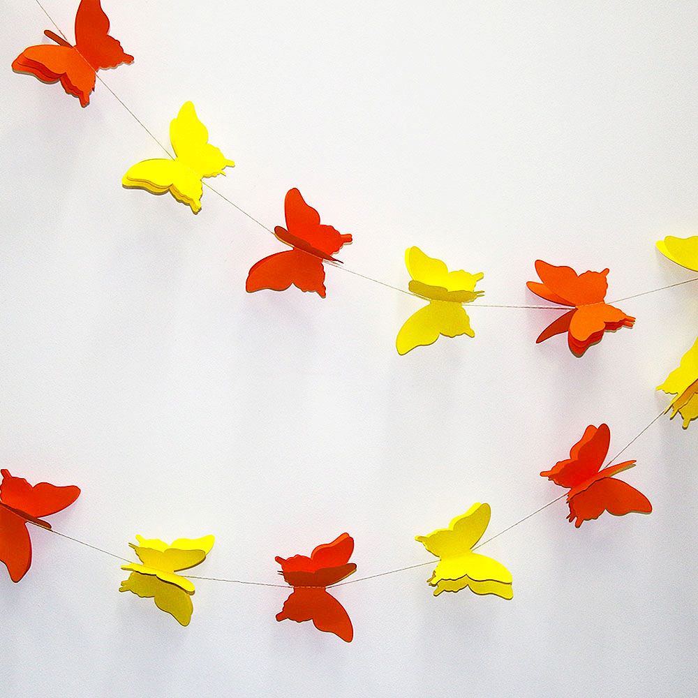 Расправьте крылья и создайте праздничное настроение. Гирлянда идеально подходит для украшения детских комнат, свадеб, окон, стен и фотозон. Объемные бабочки на нитке добавят нежности и легкости интерьеру.