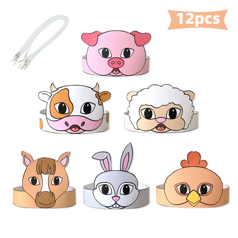 Маска-ободок бумажная Домашние животные 12 шт