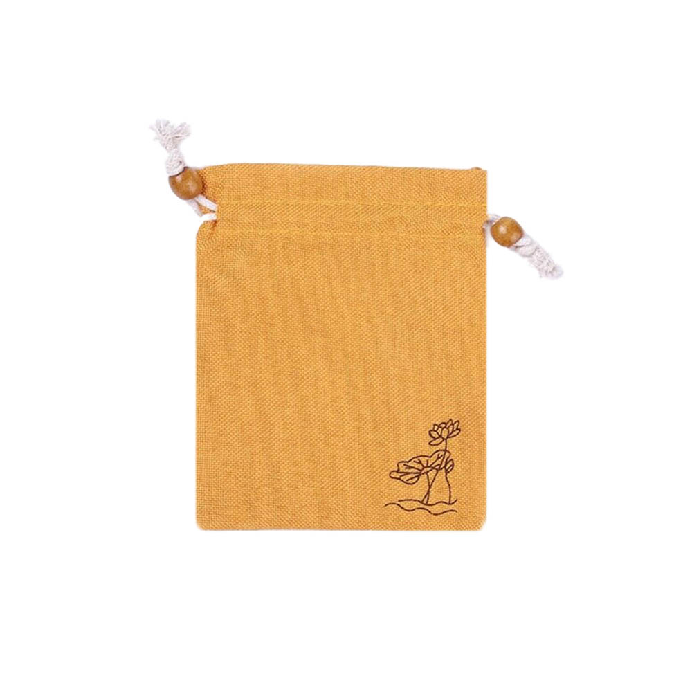 Мешочек из искусственного льна с орнаментом 15х12 см, желтый