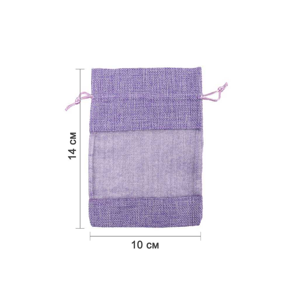 Мешочек из мешковины и органзы 10х14 см сиреневый