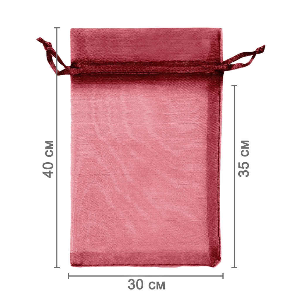 Мешочек из органзы 30 х 40 см — практичный аксессуар для упаковки крупных подарков и хранения предметов. Полупрозрачная ткань подчёркивает содержимое и придаёт праздничный вид.