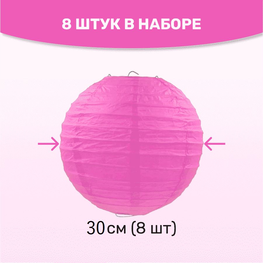 В комплект входит 8 бумажных фонариков и лента атласная.