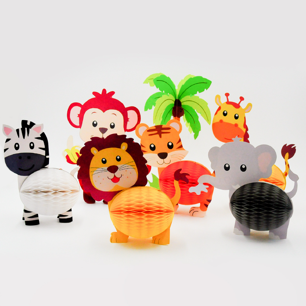 Стоячие сотовые украшения «Джунгли» — яркий набор декоративных фигурок с животными дикой природы, который перенесёт атмосферу тропических джунглей прямо на ваш праздник. Отлично подойдёт для оформления стола, фотозоны и детских тематических мероприятий.