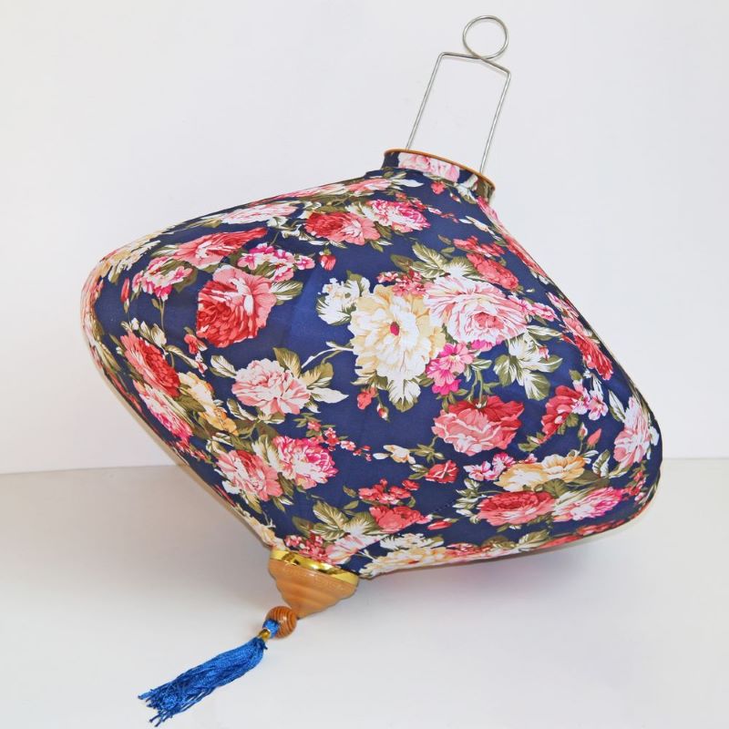 Это традиционные подвесные фонарики ручной работы, изготовленные из шелкового материала с элегантным цветочным узором, которые делают его изысканным и красивым.