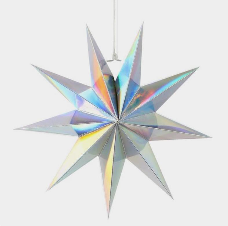 Объёмная девятиконечная звезда 45 см — декоративный элемент для интерьера и праздничного оформления. Лёгкая интерьерная звезда из картона хорошо держит форму и создаёт выразительный объём. Поставляется в сложенном виде, в комплекте шнур для фиксации объёма и подвеса.
