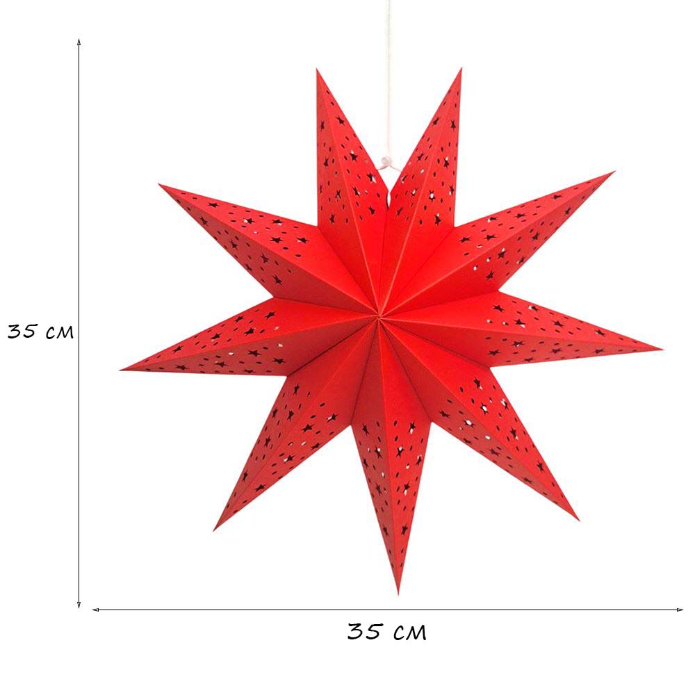 Звезда девятиконечная 35 см, точки и звездочки, красный